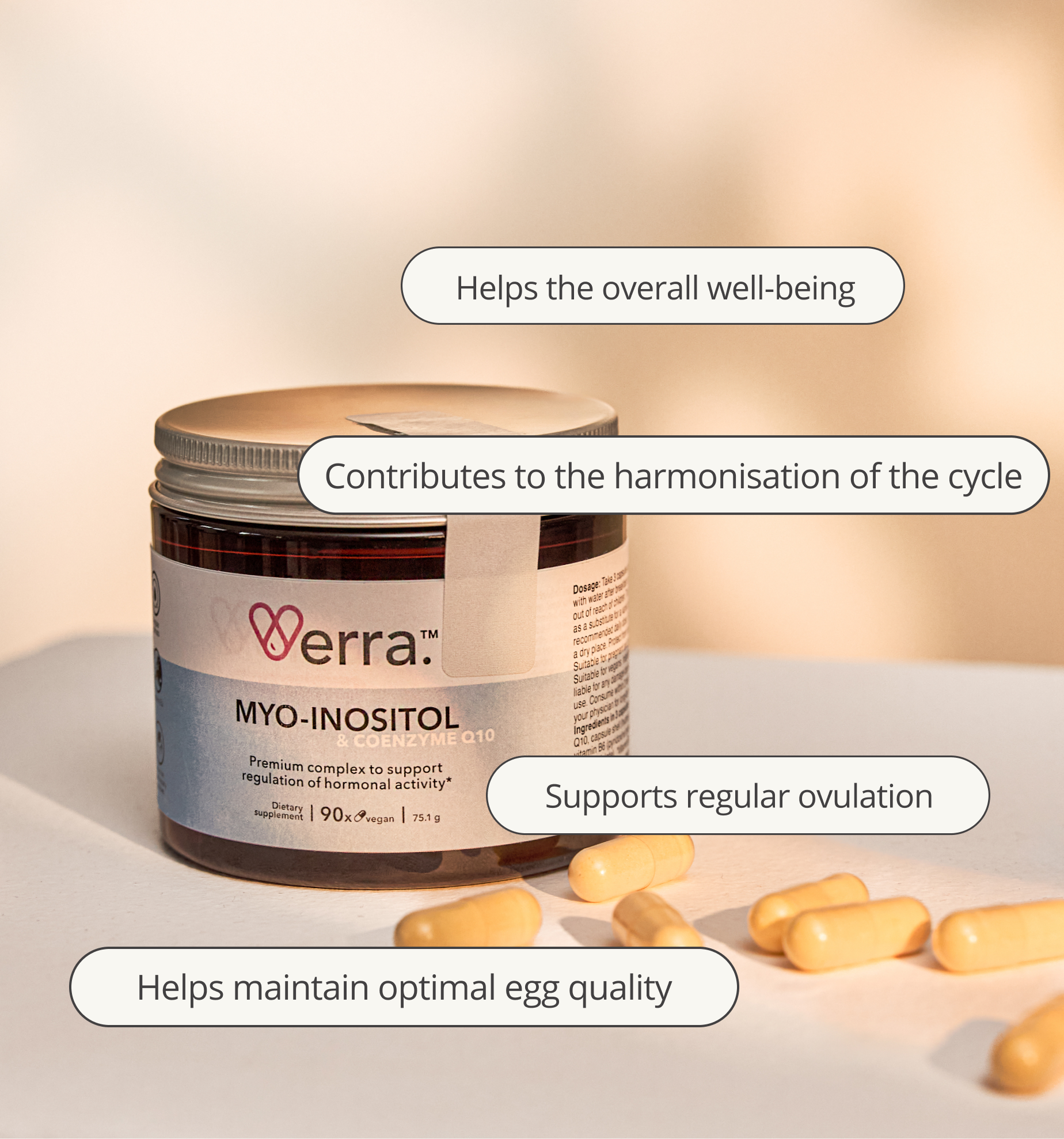 This dietary supplement is intended for women of reproductive age who want to support cycle regularity, hormonal balance, ovarian function, and egg quality—whether to support natural cycle health or when planning pregnancy.